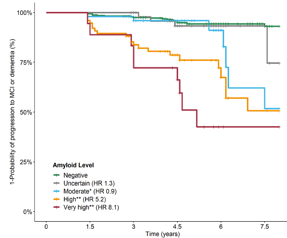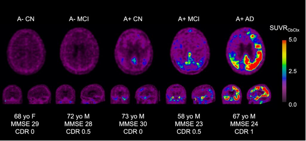 - Neuropsychological data confirmed that abnormally high levels of beta-amyloid (Aβ), detected using PET, is associated with subtle but relentless cognitive decline in individuals with dementia and mild cognitive impairment, and most importantly, cognitively unimpaired older adults. These findings contributed to the definition of the preclinical stage of Alzheimer’s disease.